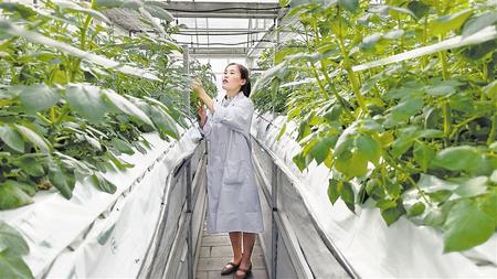 “營養(yǎng)液通過噴頭直接霧化噴灑在幼苗根系,能達(dá)到最大化吸收。”基地農(nóng)藝師周愛愛告訴記者:“霧培法不僅大幅提高馬鈴薯脫毒種薯擴(kuò)繁力,而且促使莊浪縣馬鈴薯從注重商品薯生產(chǎn)向脫毒種薯繁育轉(zhuǎn)型升級。”