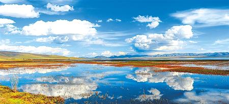 如果你來到這里,可飽覽遠(yuǎn)處草原的天空深邃如井,云如裙裾;鑲嵌于草原之中的湖水像一面明凈的鏡子,倒映著藍(lán)色的天,白色的云;近處的湖面上,鳥飛魚躍等,這些美景定會(huì)讓你流連忘返。