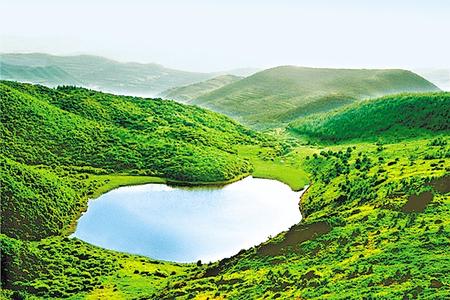 文縣天池,又名洋湯天池,位于隴南市文縣縣城以北約100公里處。由于遠(yuǎn)古時(shí)期的地殼活動(dòng),致使地殼斷裂,洋湯河河道被堵截,于是在天魏山上,便匯成了狀如葫蘆的一湖碧水,猶如一顆璀璨的藍(lán)寶石鑲嵌在隴南山區(qū)的萬山叢林之中。