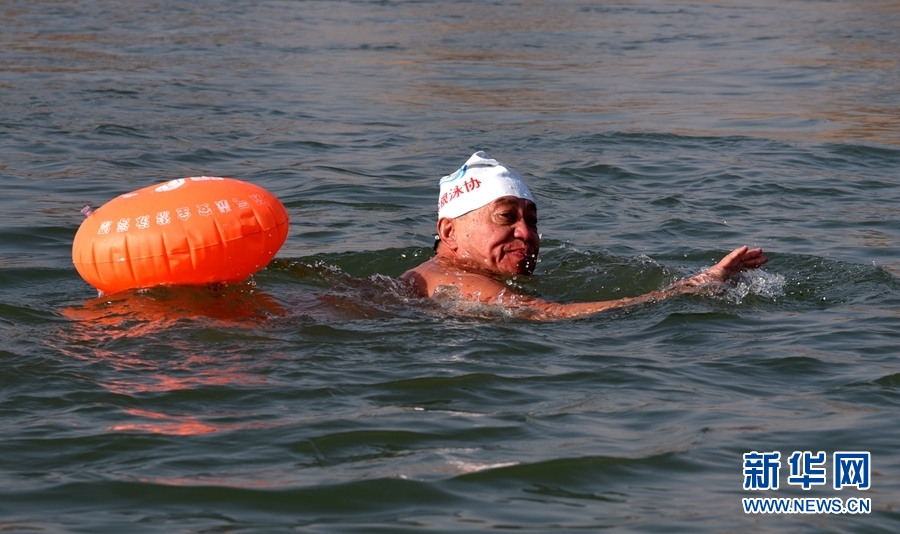 2022年元旦假期,甘肅省白銀市21名冬泳健將冒著嚴(yán)寒來(lái)到黃河白銀水川段,以漂流或橫渡的方式暢游黃河,歡慶新年。新華網(wǎng)發(fā)(熊江彬 攝)