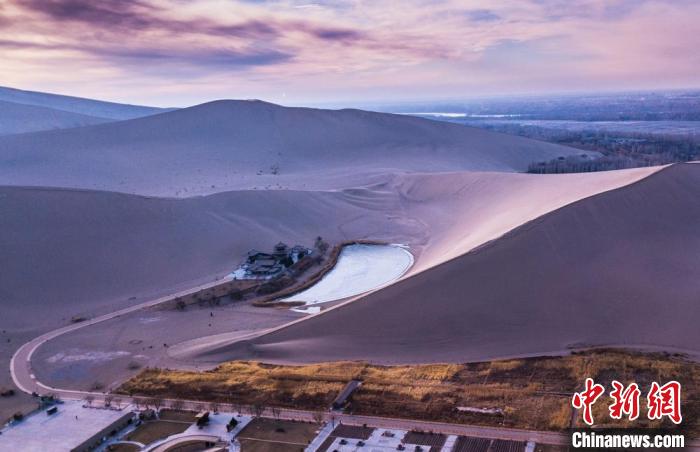 近日,甘肅敦煌發(fā)布了冬春旅游季產(chǎn)品和優(yōu)惠政策引客錯(cuò)峰出游。圖為夕陽(yáng)西下的鳴沙山月牙泉景色如畫。 王斌銀 攝