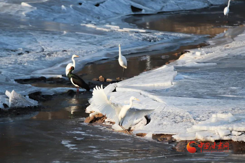 汭河水清山川美,鴛鴦白鷺入眼來,這是崇信縣汭河水域如今的自然寫照,自從河道變寬變干凈了,以前很少見的麻鴨、赤鴉成群結(jié)隊地在汭河河灘繁衍生息,還有白鷺、鴛鴦、黑鸛、蒼鷺、翠鳥等珍稀鳥類也從遠方遷徙而來,安家汭河,伴著淙淙河水、晶瑩薄冰紛紛起舞,跳著水中芭蕾。