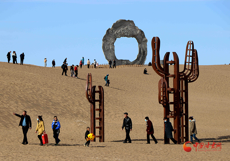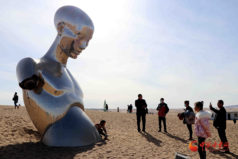 “在沙漠里賞雕塑、過大年,已經(jīng)成為一種‘新年俗、新常態(tài)、新時尚’。” 民勤縣文體廣電和旅游局局長方煜介紹說,中外藝術大師們精心創(chuàng)作的117件雕塑藝術精品永久矗立在浩翰沙漠中,見證了一個從無到有、點“沙”成金的奇跡,成就了全球首個沙漠雕塑藝術主題公園,四海賓朋聞訊相約、絡繹而來,感受民勤生態(tài)環(huán)境治理成果,見證民勤生態(tài)文明建設成效。