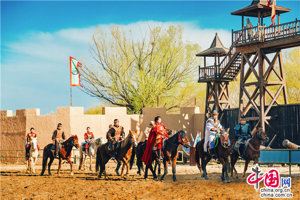 除此之外,游客在景區(qū)擂臺處不僅能夠觀看驚險刺激的市井雜耍,還有每天兩場的樂隊表演不容錯過。擂臺不遠處就是今年4月1日全新推出的實景馬戰(zhàn)《烽火西夏》演出場地,看完雜耍的游客可直接到馬場觀看接下來的演出。