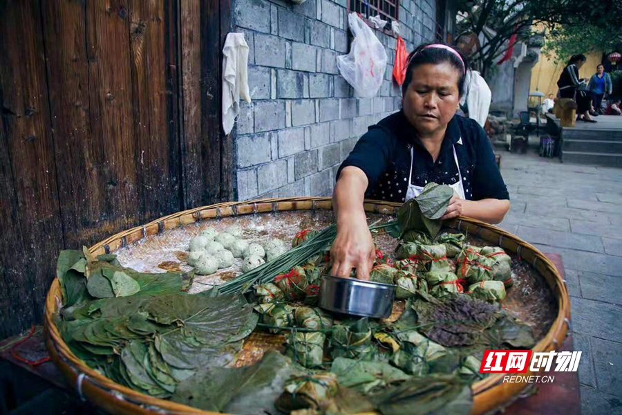 湘西吉首內,一位商販正在制作蒿子粑粑。