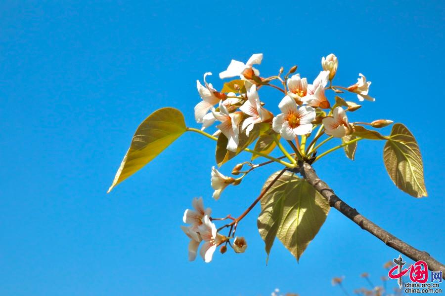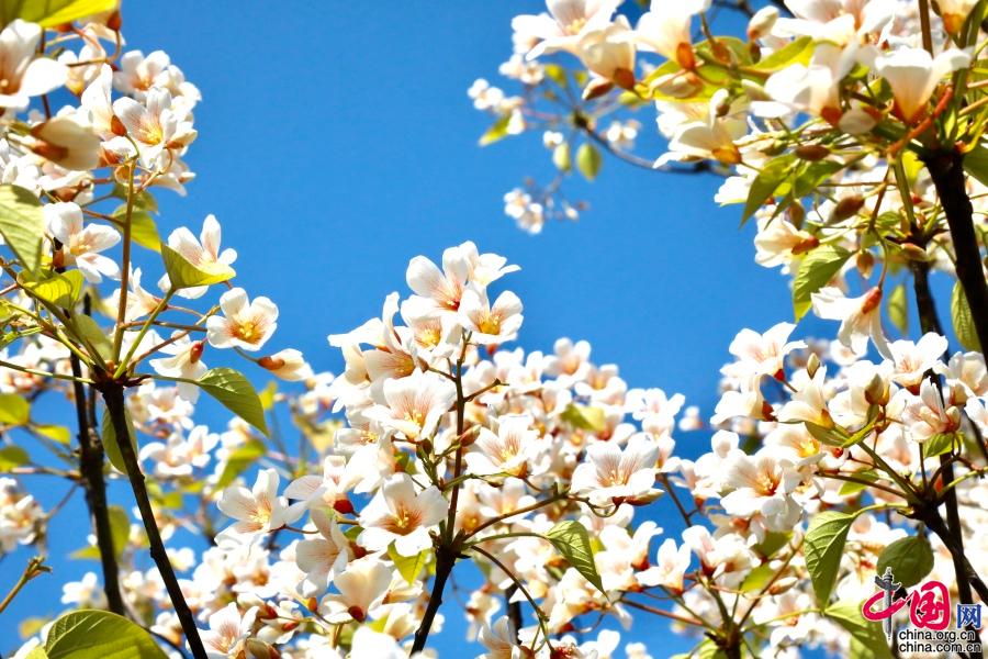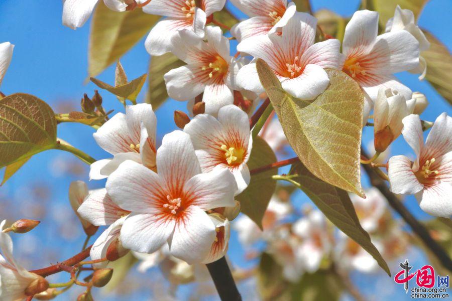 據(jù)了解,油桐的花期較短,僅半個月左右。每年四月中旬,便能看到密集成林的油桐白花簇簇,整個山頭全是花朵的世界。隨著陣陣清風(fēng),空中飄起雪白的花雨,藍天白云,落英繽紛,清香馥郁,飄逸山外。