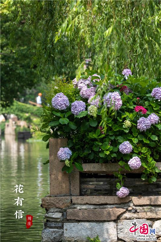 花團錦簇一詞大約是為繡球量身定制,微風(fēng)一曳,波光親吻一曳。藍紫開遍,彌漫的淡淡花香讓春天的信使忍不住沉溺其中,周莊的浪漫大抵關(guān)乎世間一切。