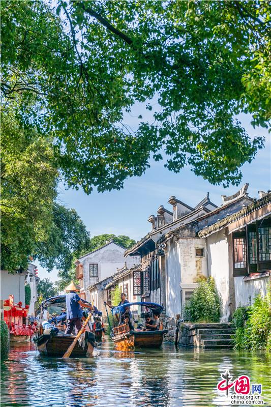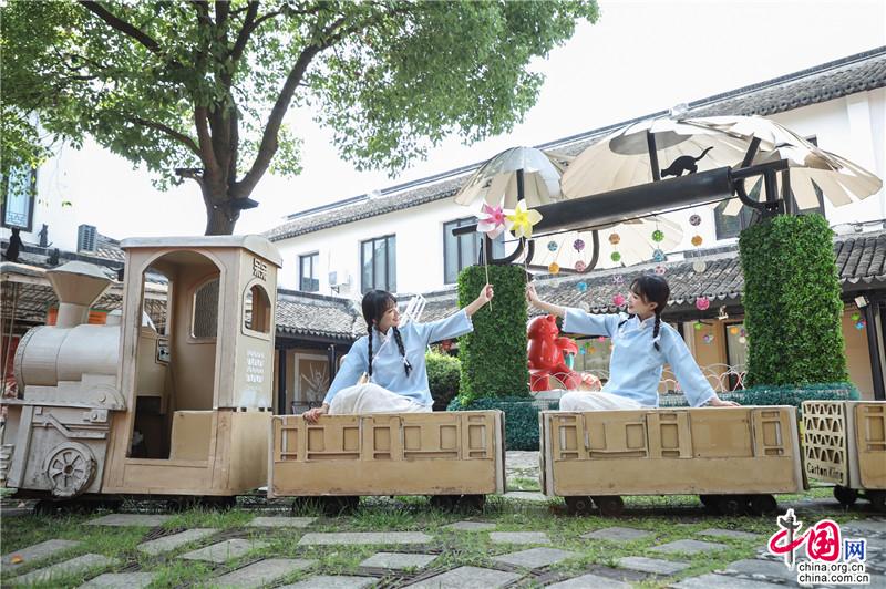 夏日遲遲至,古鎮(zhèn)緩緩行。坐一趟手搖船,穿行在23°的水巷,看陽光透過樹影落在水面上的斑駁,聽搖櫓聲聲撥動碧水的悠然,悄然經(jīng)過匆匆那年。赴一場紙箱王之約,穿梭在紙藝王國,吃一頓盈滿時光的紙上美食。坐上紙做的小火車放飛夢想,在紙箱王古郵局描繪出未來的藍圖。行走在貞豐文化街上,看貞豐十二坊的匠人匠心,觀水鄉(xiāng)周莊的人間煙火。走累了便去蘇繡藝舍感受蘇繡的獨特魅力,到爐韻沉香研習香道茶藝……一盞清茶一爐香,一衣帶水歸故鄉(xiāng)。