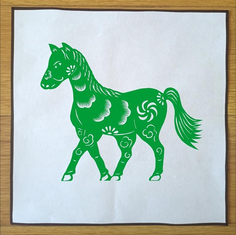 馬作為十二生肖屬相,一直是很重要的剪紙素材,包含著許多美好寓意。吳玲花創(chuàng)作這三匹“綠馬”,也是希望能用剪紙藝術(shù)傳遞祝福,只要大家都能守住“綠碼”,那么此次疫情一定能很快過去。吳玲花巧用諧音,將平安健康的美好祝愿寄托于這三匹“綠馬”之中。