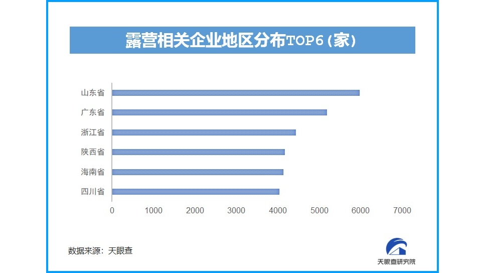 人們被疫情壓抑了的旅游需求,在露營市場得到釋放。根據天眼查大數據,我國目前已有超過6.6萬家與露營相關的企業(yè),近3年露營相關企業(yè)注冊總量增長迅猛。在地域分布上,山東的露營相關企業(yè)數量最多,近6000家。廣東、浙江、陜西、海南、四川等緊隨其后,均超過4000家。