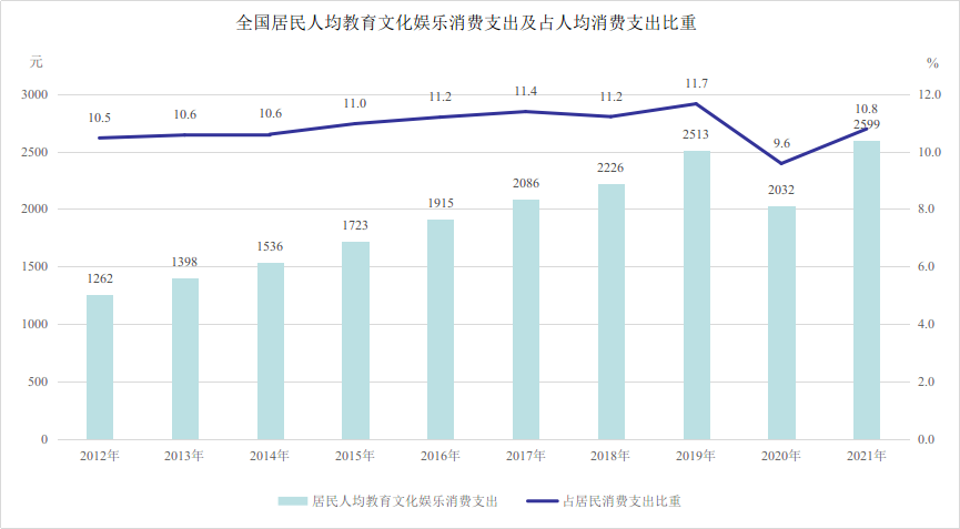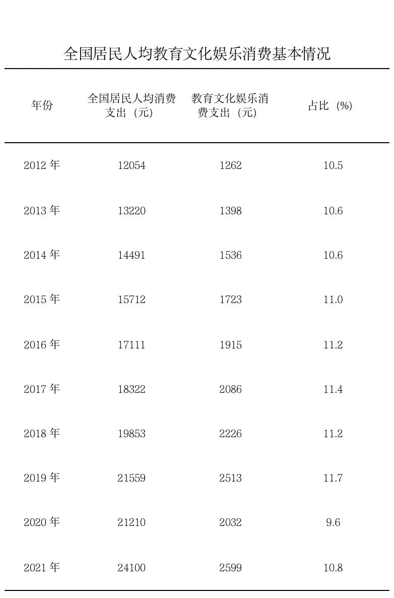 記者從文化和旅游部獲悉,十年來,文化產(chǎn)品和服務(wù)供給不斷豐富,促進(jìn)文化和旅游消費(fèi)取得顯著成效。2021年,全國居民人均教育文化娛樂支出2599元,較2012年增長105.9%。