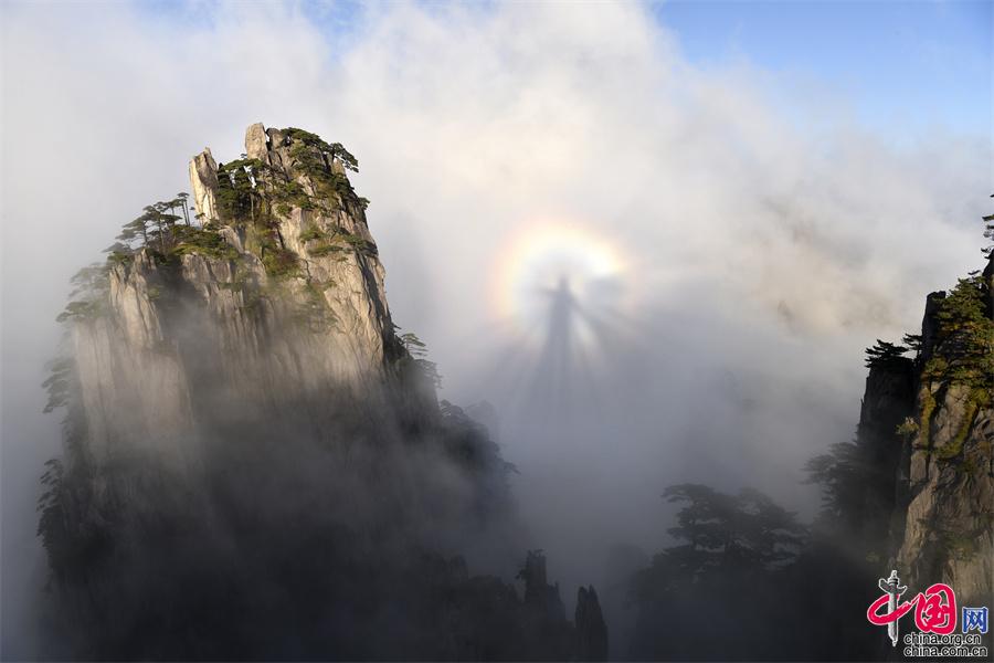 原標(biāo)題:黃山景區(qū)“佛光”顯現(xiàn) 自然美景象征吉祥(圖)