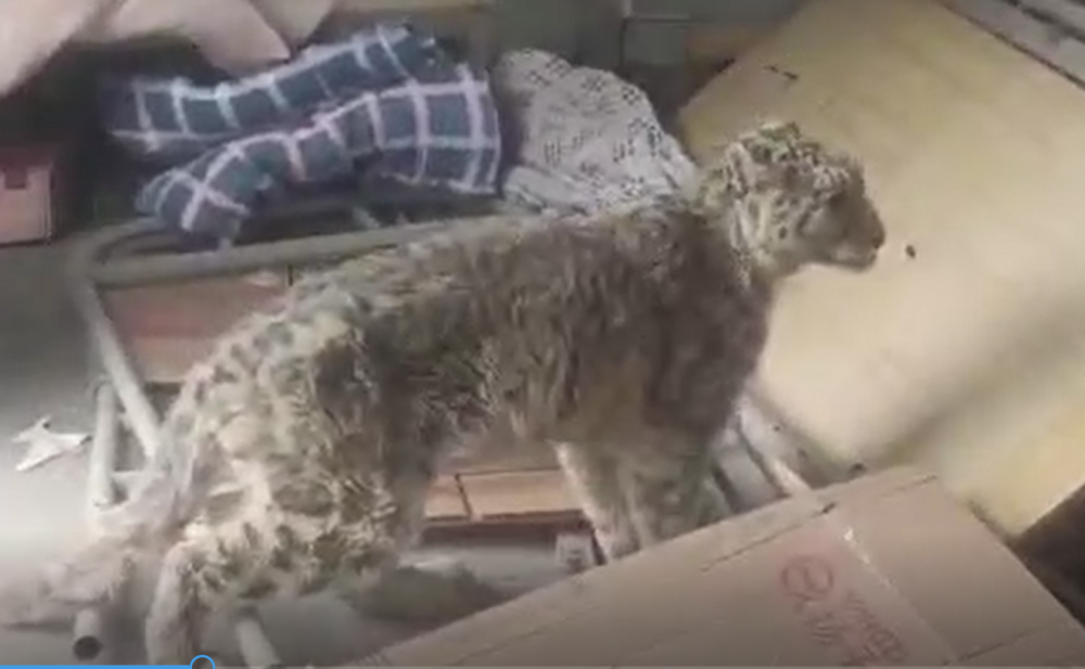 雪豹被困廢舊儲(chǔ)藏室。(大熊貓祁連山國家公園甘肅省管理局張掖分局供圖)