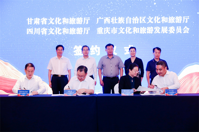 ——“環(huán)西部火車游”。“環(huán)西部火車游”是由甘肅省文旅廳與中國鐵路蘭州局集團公司于2018年4月聯(lián)合推出的鐵旅融合王牌旅游產(chǎn)品,被譽為陸上郵輪、夢想旅游專列。甘肅省文旅廳聯(lián)合中國鐵路蘭州局集團于2020年5月1日串起敦煌到隴南12個站點,打通了省內(nèi)小環(huán)線;8月1日開始跨省推廣,打通了甘川渝陜寧青“1+5”中環(huán)線;10月1日從甘肅到廣西再到新疆,途經(jīng)九省區(qū)市8000公里,形成了連接“陸海絲”、對接?xùn)|盟與中亞的大環(huán)線。其中,2020年下半年,由省文旅廳牽頭跨省跨界組織開展了聲勢浩大的“聯(lián)通陸海絲·助推雙循環(huán)”——甘肅文旅“環(huán)西部火車游”主題推廣營銷活動,合力奏響文化和旅游系統(tǒng)“你中有我、我中有你”的大聯(lián)動、大協(xié)作、大發(fā)展“交響曲”,成功實現(xiàn)了“環(huán)西部火車游”連接聯(lián)通陸上絲綢之路和海上絲綢之路大環(huán)線的預(yù)期目標(biāo)。此主題推廣營銷活動獲評“2020年度中國文旅營銷創(chuàng)新典范”,入選2020年國內(nèi)旅游宣傳推廣典型案例,“環(huán)西部火車游”產(chǎn)品因此更加走紅走俏。2018—2021年,“環(huán)西部火車游”累計開行專列178列,組織游客15.67萬人,實現(xiàn)旅游收入1.37億元。2022年,省文旅廳與平?jīng)鍪姓?、中國鐵路蘭州局集團合作,開通運營“環(huán)西部火車游·崆峒號”品牌列車,從蘭州出發(fā)至平?jīng)雒恐芡颠\行一趟,著力打造交旅融合的“平?jīng)鰳影?rdquo;。