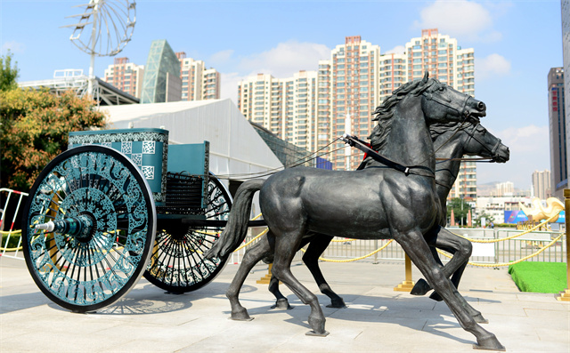 ——文物活化利用工程。作為全國文物大省,甘肅省文旅廳深入學(xué)習(xí)領(lǐng)會、認(rèn)真貫徹落實習(xí)近平總書記關(guān)于“讓文物活起來”的重要論述精神,持續(xù)激活文物資源和文化遺產(chǎn)蘊含的創(chuàng)新創(chuàng)造基因,不斷提高展示傳播水平,讓文物說話,讓歷史說話,讓文化說話,已經(jīng)成為全省文旅工作者的生動實踐。正在加快敦煌研究院“典范”“高地”建設(shè),推進長城、長征、黃河國家文化公園建設(shè)。實施中華文明探源工程和“考古中國”等重大項目,以甘肅秦文化和西戎文化考古成果為原型復(fù)制“戰(zhàn)國豪車”,賦能文旅產(chǎn)業(yè)。由甘肅省文旅廳組織制作的戰(zhàn)國戎人車輿,嚴(yán)格依照馬家塬戰(zhàn)國戎人貴族墓地出土古車式樣,采用銅雕髹漆等技藝,再現(xiàn)了戰(zhàn)國戎人車輿風(fēng)采,體現(xiàn)了甘肅文旅系統(tǒng)融入“一帶一路”倡議、秉承絲路精神、復(fù)興絲綢之路、構(gòu)建人類命運共同體的文化自覺。戰(zhàn)國戎人車馬以文創(chuàng)的形式與甘肅彩車一道復(fù)原展出,即刻走進大眾視野,成為甘肅文旅和省會蘭州的又一張靚麗新名片、城市新地標(biāo)。