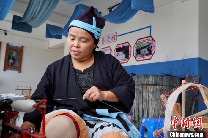 如今,這間織繡坊已成為白褲瑤服飾文化的傳承基地,并吸納當?shù)囟嗝麐D女參與織染勞動。黎秋憶還創(chuàng)新性地將藍靛染技藝用于背包、枕頭等現(xiàn)代物品的制作之中,讓瑤族服飾文化煥發(fā)新的生機。