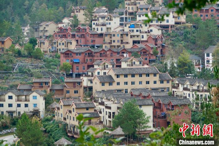 11月21日,在廣西河池市南丹縣的山區(qū),清晨的薄霧綿延在群山之間,為當?shù)卦鎏砹艘环萆衩厣省N挥谀系たh境內(nèi)的朵努社區(qū),上百棟別具特色的安置房錯落有致地“鑲嵌”在山腰之間,這是當?shù)匕籽潿幘用竦囊椎胤鲐毎徇w安置點。