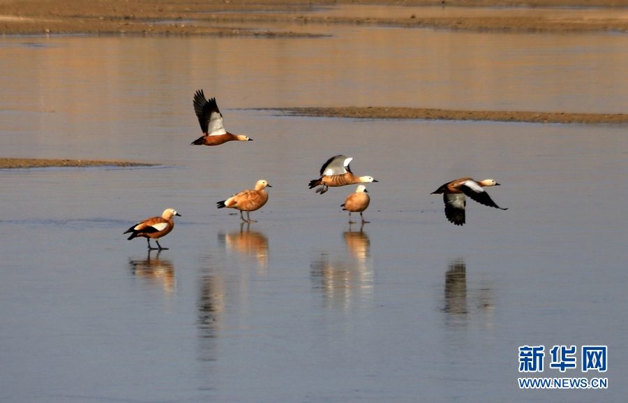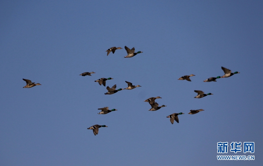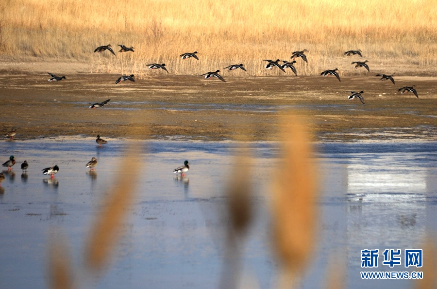 初冬時節(jié),位于鳴沙山下的甘肅省敦煌市黨河濕地,白鷺、綠頭鴨、赤麻鴨、灰雁等候鳥在這里棲息、飛翔、覓食,構(gòu)成了一幅和諧美麗的生態(tài)畫卷。