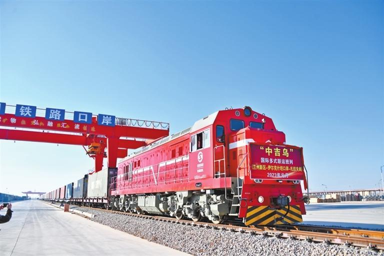 原標(biāo)題:蘭州新區(qū)2023年 首趟“中吉烏”公鐵聯(lián)運(yùn)國際班列發(fā)車