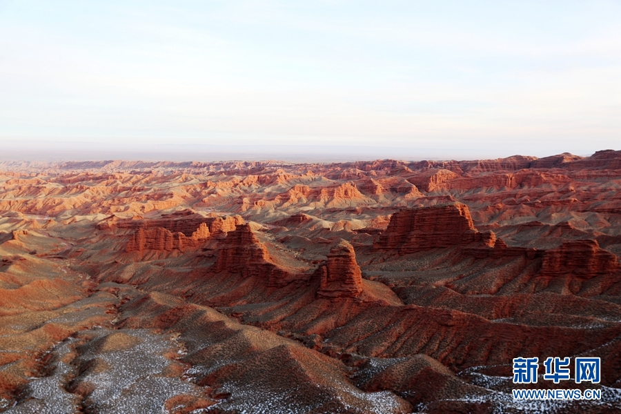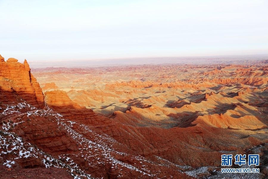 1月1日清晨,甘肅張掖平山湖大峽谷景區(qū)雪后初霽、群峰聳立,在新年朝陽(yáng)的照耀下更顯雄渾壯觀。新華網(wǎng)發(fā)(成林 攝)