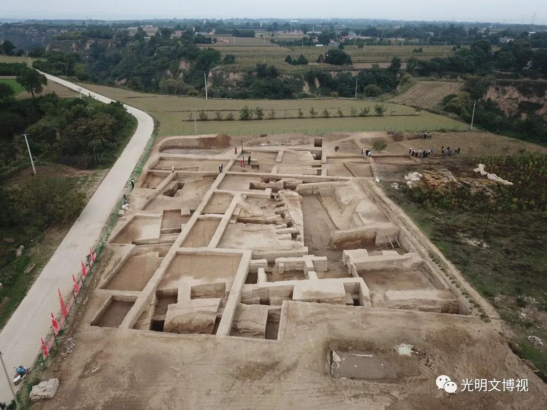 甘肅慶陽(yáng)西峰西郊的南佐遺址,坐落在黃土高原第一大塬——董志塬上,傳說(shuō)中這里是黃帝部族的重要活動(dòng)地域,也是以農(nóng)業(yè)著稱的周人祖先不窋?shù)睦霞?。南佐遺址發(fā)現(xiàn)于1958年,1984—1986年和1994—1996年有過(guò)兩個(gè)階段的發(fā)掘,從2021年開(kāi)始第三階段的發(fā)掘和調(diào)查、勘探工作,基本確認(rèn)這是一處以仰韶文化晚期大型聚落為主體的遺址,遺址面積在600萬(wàn)平方米以上,可能有外環(huán)壕。聚落中部是由9座方形夯土臺(tái)及其環(huán)壕圍成的面積約30萬(wàn)平方米的核心區(qū),核心區(qū)中部偏北是數(shù)千平方米的由“護(hù)城河”和夯土宮墻圍成的“宮城”。“宮城”中心為主殿,“九臺(tái)”之外還有多處居住區(qū)、夯土臺(tái)、溝渠水利設(shè)施等遺存,出土了大量白陶、黑陶等珍貴遺物和大量水稻,從多個(gè)方面顯現(xiàn)出早期國(guó)家和文明社會(huì)的氣象。