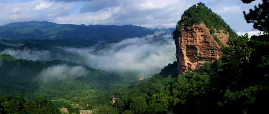 “彩塑點佛窟,丹青繪梵宮”,麥積山石窟位于甘肅省天水市東南約45公里的秦嶺山脈之中。因山形酷似西北地區(qū)農(nóng)家麥垛而得名,后經(jīng)唐、宋、元、明、清各代不斷開鑿擴(kuò)建,成為中國著名的四大石窟之一。以精美的泥塑著稱于世,被稱為“東方雕塑陳列館”。