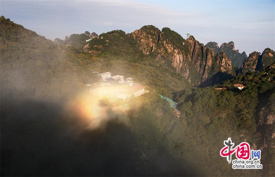 9月7日,安徽黃山風(fēng)景名勝區(qū)云霧飄渺仙氣飄飄,如同仙境,云霧在初升的陽(yáng)光照射下,神奇的“佛光”景象出現(xiàn)在人們眼前,讓來黃山的游客大飽眼福,贊嘆大自然的鬼斧神功。