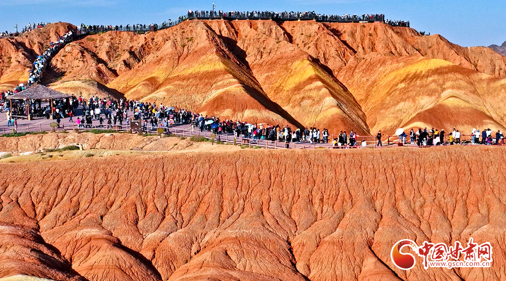 9月30日,甘肅張掖七彩丹霞景區(qū)內(nèi)人頭攢動,全國各地的游客紛至沓來,欣賞獨特的丹霞地貌,領(lǐng)略西北壯美景色。