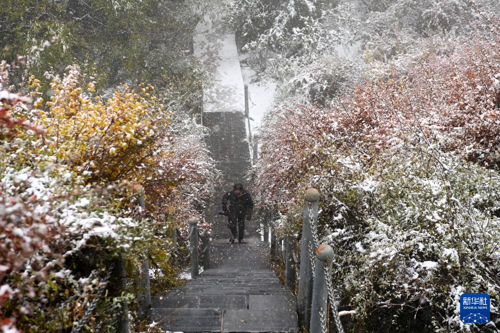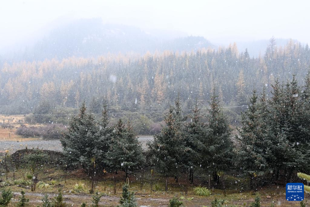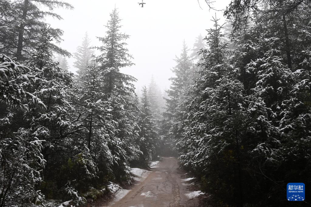 金秋時節(jié),甘肅省張掖市肅南裕固族自治縣境內的祁連山脈迎來一場降雪,云杉翠柏與皚皚白雪相映成趣,美不勝收。