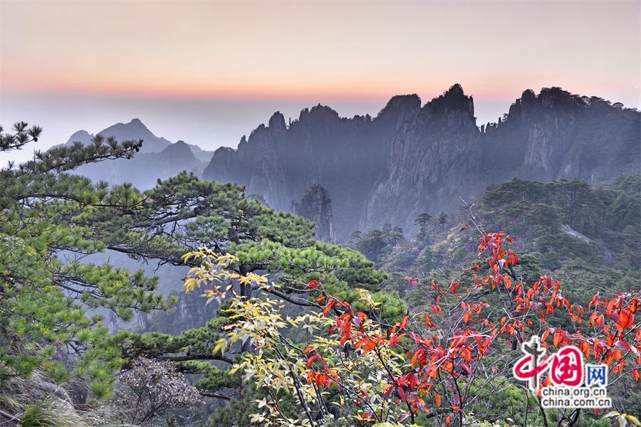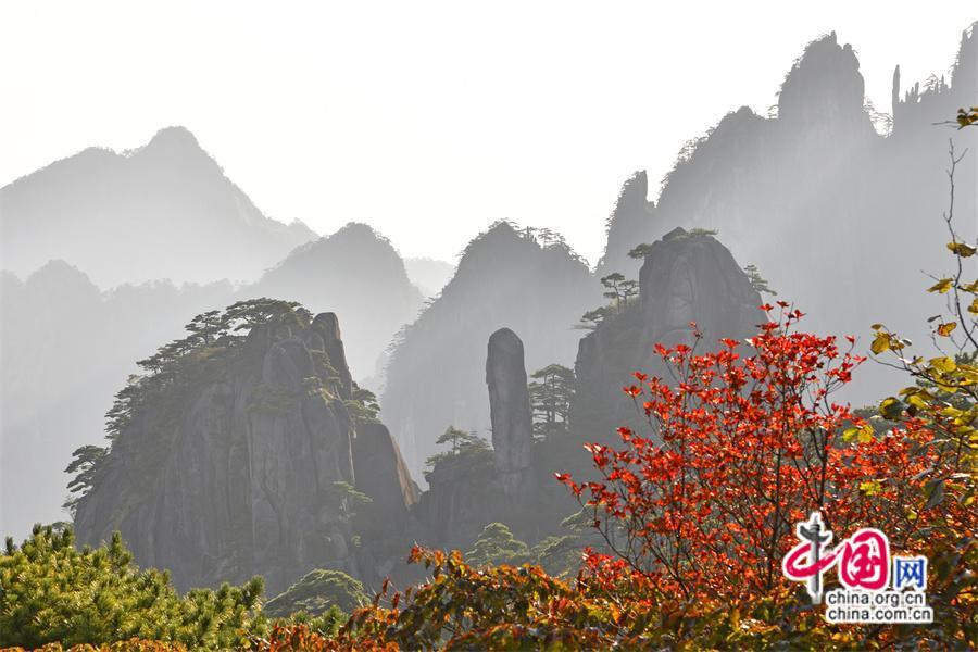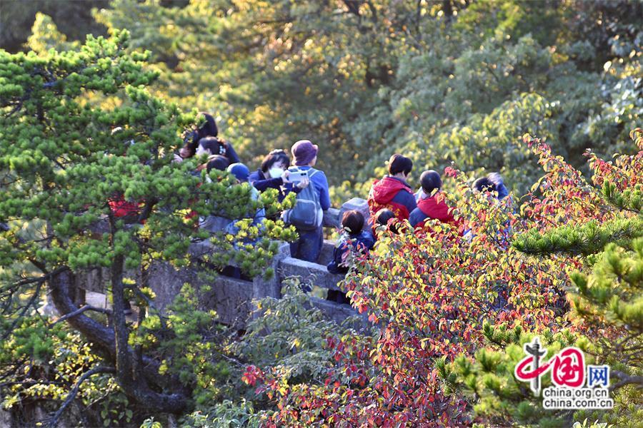 10月以來黃山風景區(qū)已進入秋色斑斕季節(jié),是一年中色彩最豐富的季節(jié),晨曦暮落,處處如畫,古松與秋果相隨,青紅交織,金黃色的樹葉隨秋風在空中飛舞,或飄落在游步道上、或散落在峽谷中,處處生機盎然,令人流連忘返,明代旅行家徐霞客是這樣贊美黃山的“楓林相間,五色紛披,燦若圖繡”。