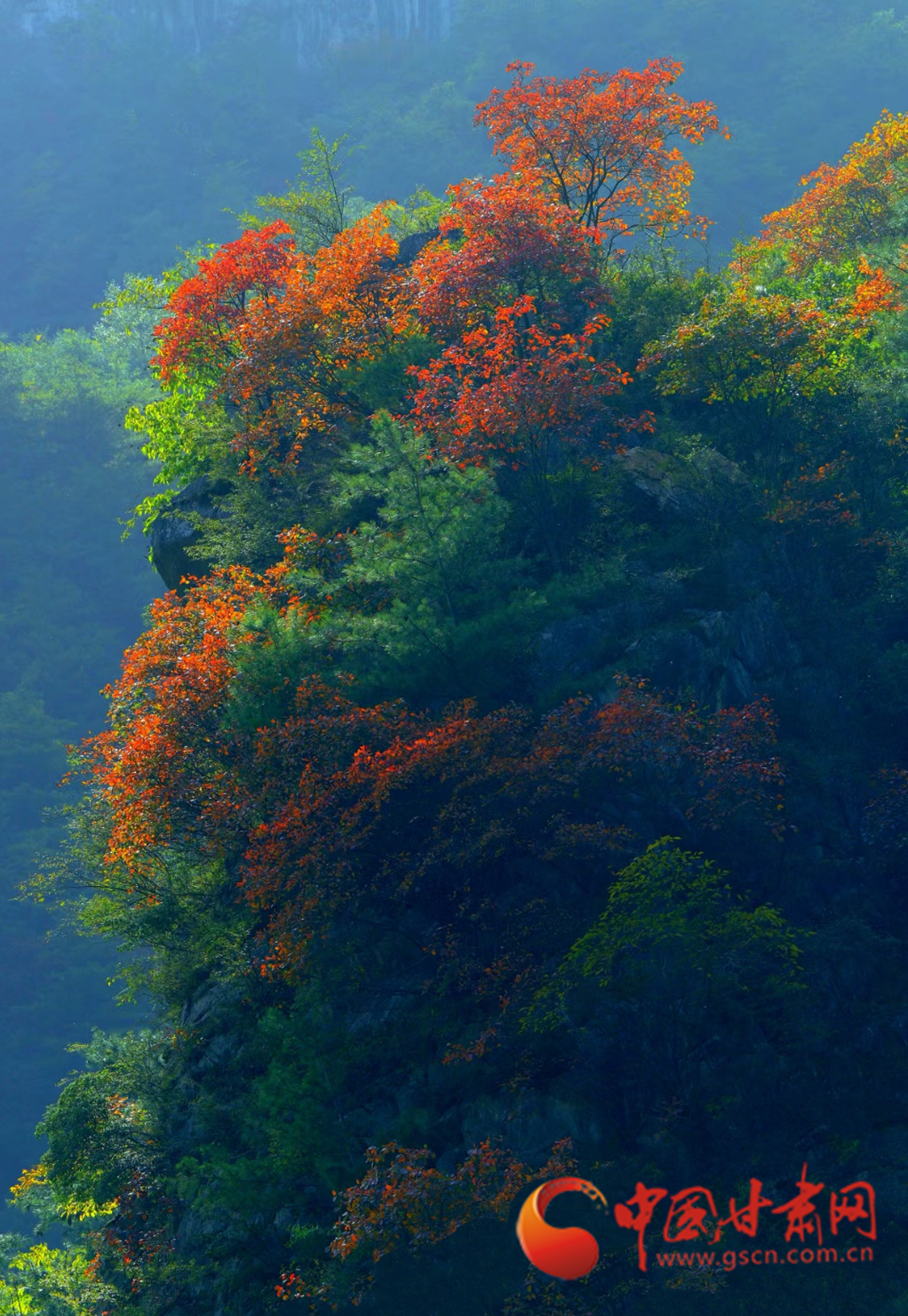 進(jìn)入十月,康縣的秋景漸入佳境,秋日的暖陽(yáng)透過(guò)薄霧灑在五彩斑斕的山脊上,滿山層林盡染、渾然一體,好似一幅油彩畫(huà)。