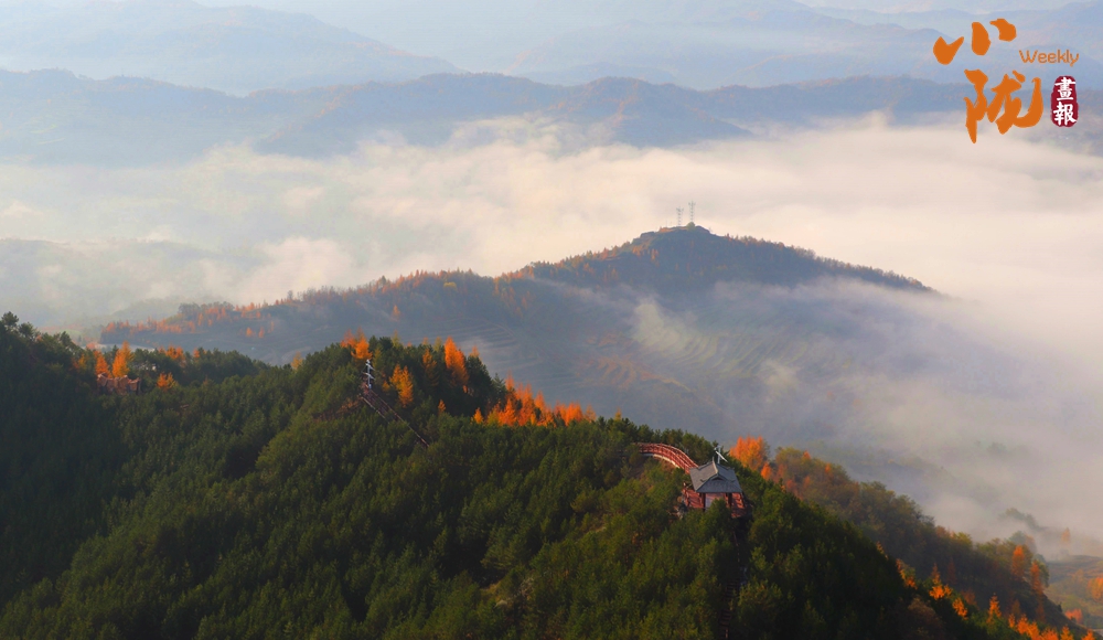 一場(chǎng)秋雨過后,境內(nèi)云華山呈現(xiàn)出一瀑萬頃、白浪翻滾的云海景象。