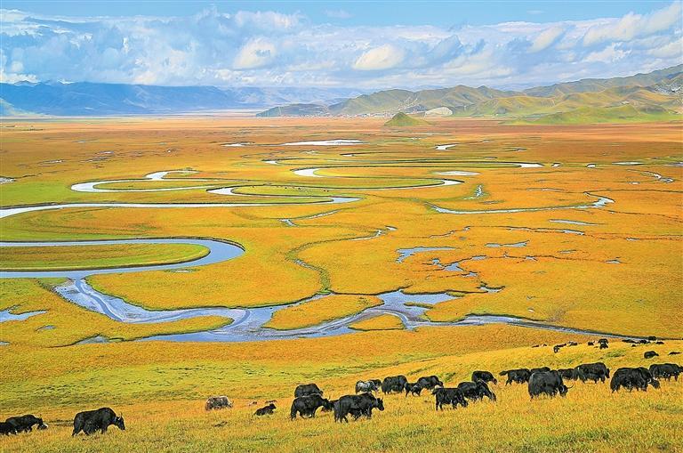 “天下黃河第一彎”“格薩爾發(fā)祥地”“中國賽馬之鄉(xiāng)”“世界最大最美的濕地草原”“藏族民歌彈唱故里”……這就是瑪曲,被譽為“中華水塔”和黃河的“蓄水池”。瑪曲,藏語譯為“黃河”,這里歷史文化悠久,旅游資源富集,擁有廣袤的草原、俊秀的濕地。近年來,呈現(xiàn)蓬勃發(fā)展之勢的文旅產業(yè),成為瑪曲縣深挖獨特資源稟賦、激活區(qū)域經濟發(fā)展的一個縮影。