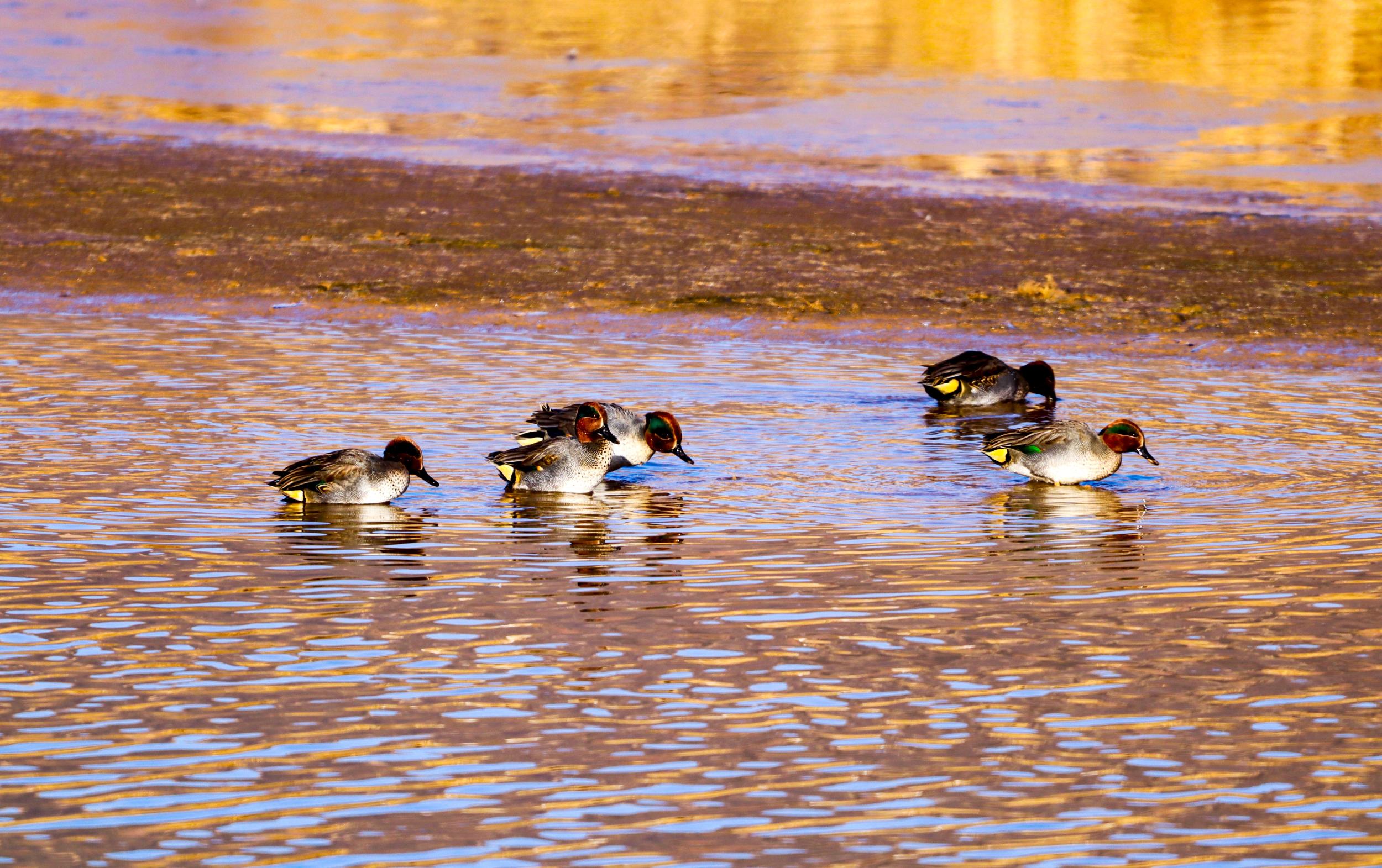 在水中嬉戲的綠翅鴨