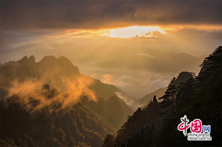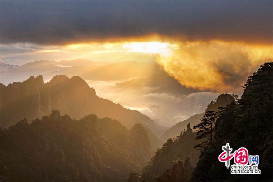 原標題:只有一個黃山:日出霞光盡染 云霧輕舒漫卷