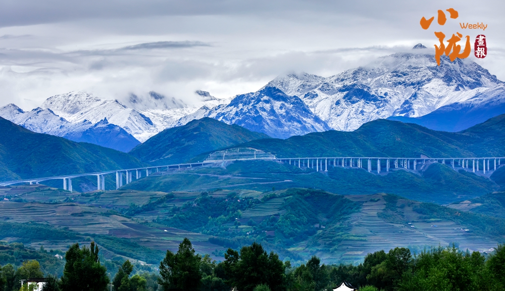 層巒疊嶂的雪峰和蔥郁的山坡、綠樹(shù)形成鮮明對(duì)比,成為一道靚麗的風(fēng)景線(xiàn)。駐足遠(yuǎn)觀(guān),滿(mǎn)眼都是大自然的溫柔與浪漫。