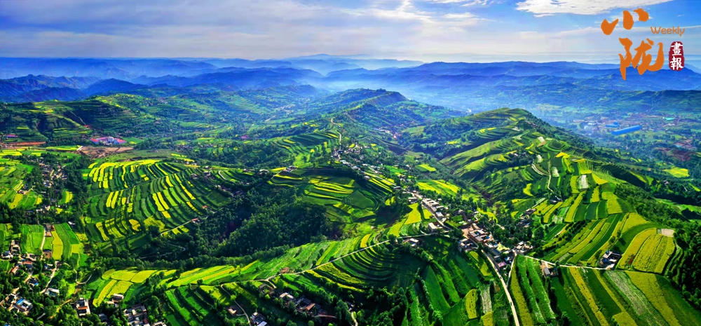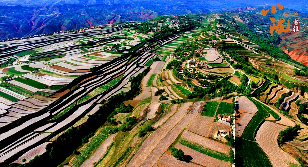 一塊塊梯田,從山峁到山腳,依次而下,大大小小,一層層、一片片,遠(yuǎn)遠(yuǎn)望去,千層萬(wàn)疊,一片紛繁。蔥綠與明黃裝扮的沃野,是季節(jié)的舞衣,也是莊戶(hù)人的希望。