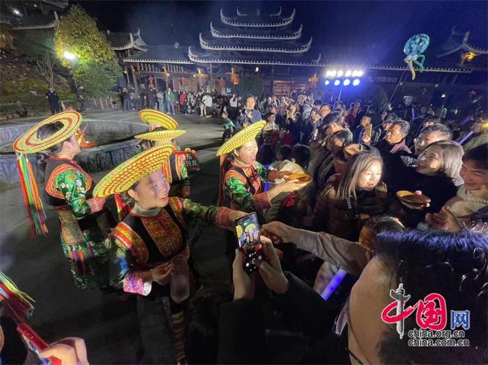 好在天氣給臉,年三十到正月初五,天天陽(yáng)光明媚,溫暖熙熙,給演唱會(huì)的人氣奠定了很好的基礎(chǔ)。你瞧,穿巖山景區(qū)楓香瑤寨、千里古寨、雁棲山莊、蒲安沖民宿、時(shí)珍園康養(yǎng)上千個(gè)房間都住滿了游客,都連統(tǒng)溪河鎮(zhèn)上的酒店、客棧都是爆棚。從婁底趕來(lái)李小苑一家五口和唐詩(shī)一家三口,結(jié)伴而來(lái),沒(méi)有住處,只好到遠(yuǎn)離景區(qū)15公里的縣城住下,然后去景區(qū)吃晚飯,晚上觀看演出。唐詩(shī)對(duì)筆者說(shuō),我來(lái)過(guò)穿巖山,感覺(jué)這里的風(fēng)景好看,工作人員也很客氣,有那么多的住宿點(diǎn),我就沒(méi)有預(yù)訂。想不到來(lái)了之后,全訂完了。