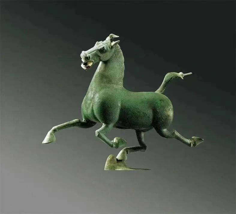 銅奔馬高34.5厘米,長45厘米,寬13.1厘米,重7.3千克,三足騰空,一足超掠飛鷹,昂首長嘶,以矯健之姿疾足飛馳,僅一足著力支撐起馬身,展現(xiàn)了當時極其卓越的工藝水平。