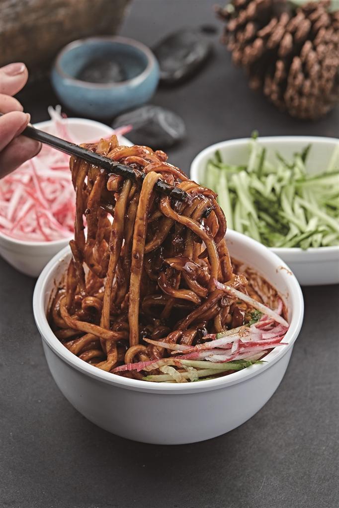 和老北京炸醬面相比,蘭州炸醬面雖然少了時令蔬菜,但是肉醬分量很足,這絕對代表了蘭州人的實在和“碳水之都”的誠意。一口裹上醬汁的面條可以直接“擊碎”饑餓。蘭州人做炸醬用現(xiàn)成的面醬加上肉末、蔥等作為主料,再配以農(nóng)家常見的蔬菜丁,把肉末上鍋烹炒后放入蔥末,再添加調料炒到半熟加入適當?shù)乃每旎馃?,炸醬中加淀粉勾芡使炸醬變得柔滑濃香,再配上筋道的手工拉面澆上炸醬,加上辣椒油,淋一點醋那就濃香四溢了。