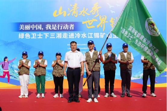 活動(dòng)現(xiàn)場(chǎng),與會(huì)領(lǐng)導(dǎo)還為冷水江綠色衛(wèi)士生態(tài)環(huán)境志愿服務(wù)隊(duì)進(jìn)行了授旗。