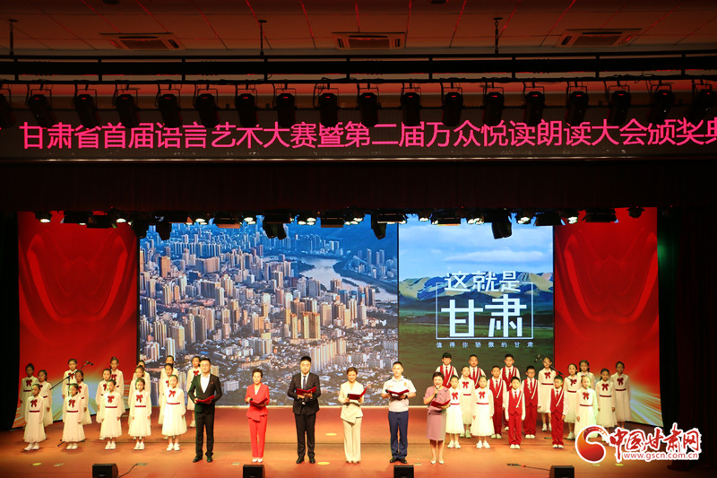 在展演環(huán)節(jié),參賽選手們用豐富多彩的語(yǔ)言表演形式,聲情并茂的舞臺(tái)演繹,為觀眾呈現(xiàn)了一場(chǎng)精彩絕倫的視聽(tīng)盛宴,贏得了現(xiàn)場(chǎng)觀眾經(jīng)久不息的掌聲,頒獎(jiǎng)儀式在合誦《這就是甘肅》中落下帷幕。