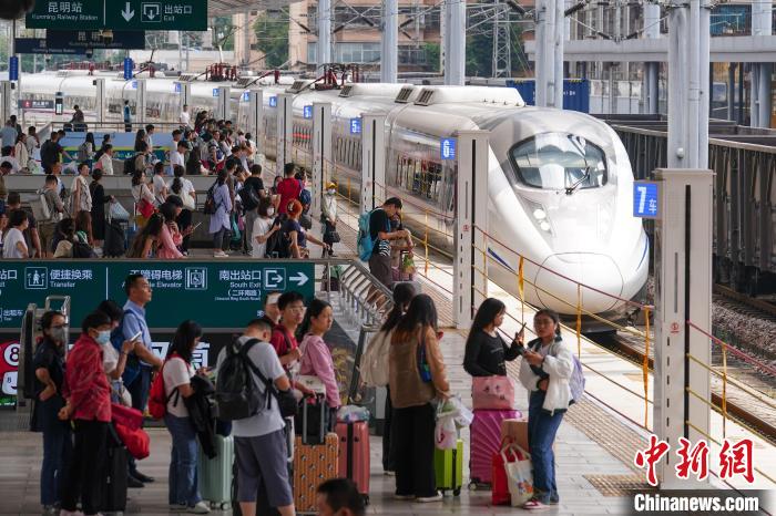 8月31日,云南昆明,列車抵達昆明站。當日,為期62天的中國鐵路暑運結(jié)束。中新社記者 劉冉陽 攝