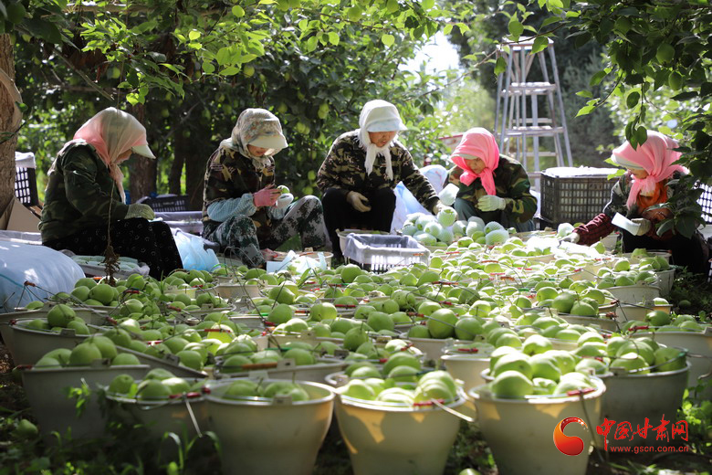 初秋時(shí)節(jié),走進(jìn)高臺(tái)縣宣化鎮(zhèn)林杰新品梨基地,香甜醉人的早酥梨猶如一盞盞黃燦燦的“小燈籠”掛滿枝頭。梨園內(nèi),100多名季節(jié)工忙著采摘、精選、套袋、裝箱,處處洋溢著豐收的喜悅,基地300畝早酥梨搶鮮上市。