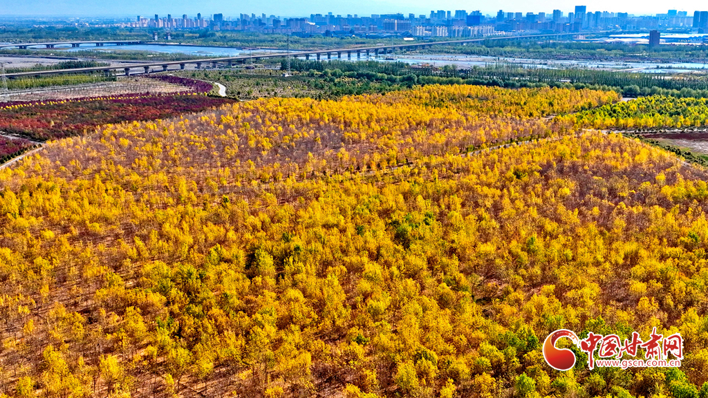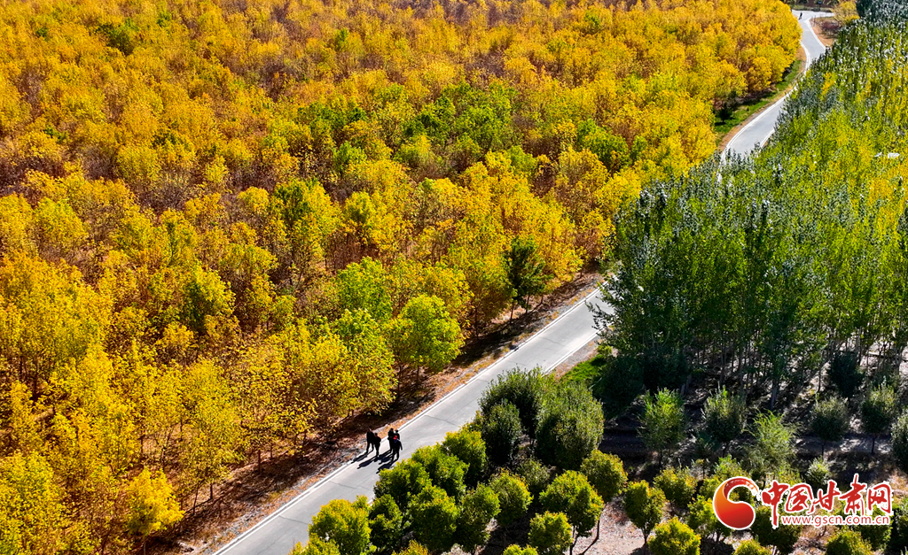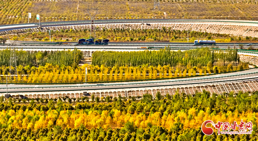 金秋時(shí)節(jié),張掖市甘州區(qū)的黑河兩岸,生態(tài)防護(hù)林的樹(shù)葉逐漸披上金色與紅色,景色迷人。尤其是那延綿的人工胡楊林景區(qū),金黃一片,層巒疊嶂,美不勝收。蘭新高鐵與連霍高速穿梭于這片林海之中,構(gòu)成了一幅動(dòng)人的風(fēng)景線(xiàn)。這里的空氣純凈、環(huán)境寧?kù)o、負(fù)氧離子含量豐富,成為了游客和市民休閑觀(guān)光的理想之地。