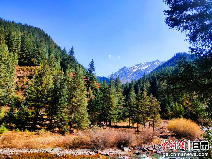 10月中旬,祁連山保護(hù)區(qū)海潮壩森林區(qū),山明水秀,風(fēng)光旖旎多彩,猶如一幅幅絢爛瑰麗的寫意畫卷,在天地間依次鋪展而來。馬亞偉 攝