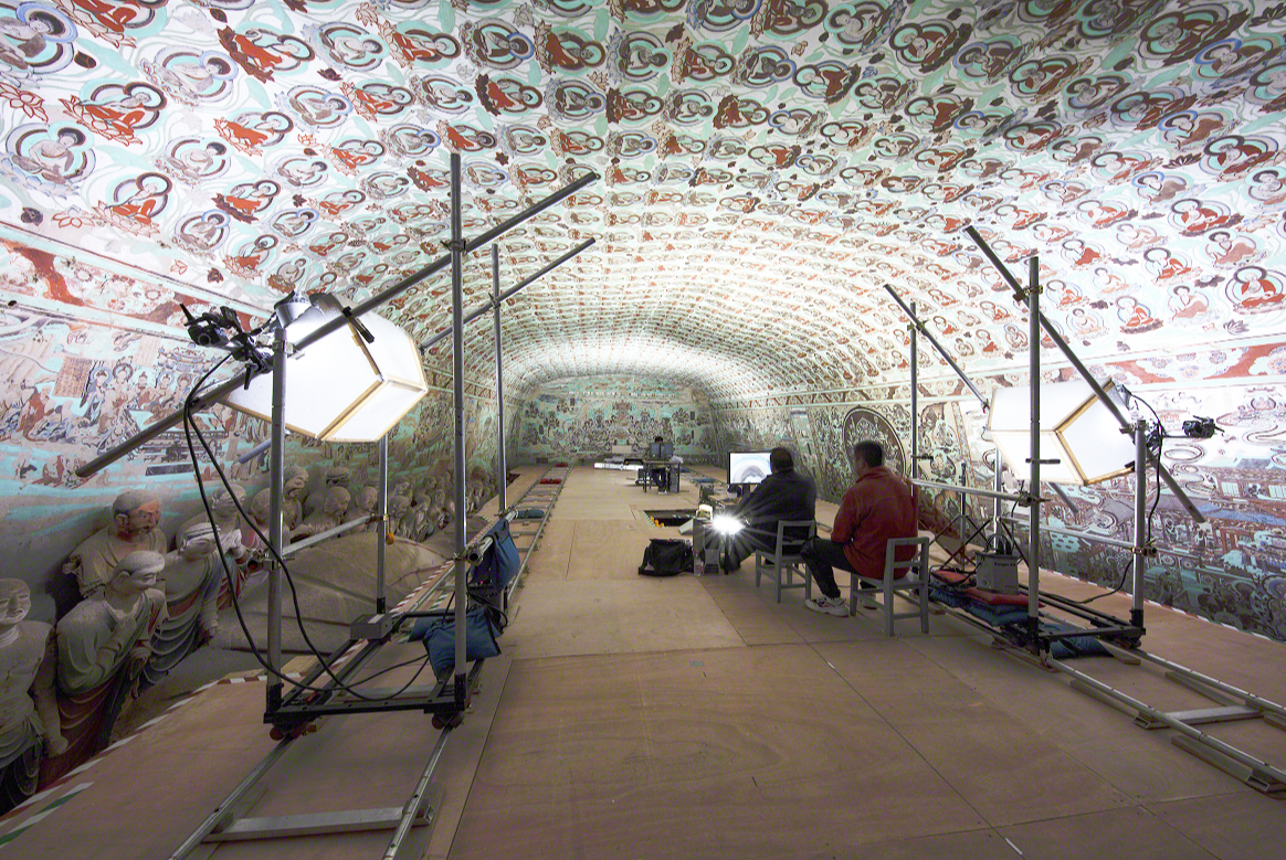 (莫高窟第148窟文物數(shù)字化采集工作現(xiàn)場 圖源:敦煌研究院)