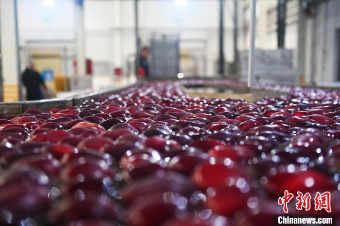 連日來(lái),從事30多年蘋(píng)果生意的秦安縣雪原果品有限公司負(fù)責(zé)人蔡全斌忙得不可開(kāi)交,加工車(chē)間內(nèi)蘋(píng)果自動(dòng)化分揀線晝夜不歇,車(chē)間外運(yùn)輸蘋(píng)果的大貨車(chē)往來(lái)不絕。