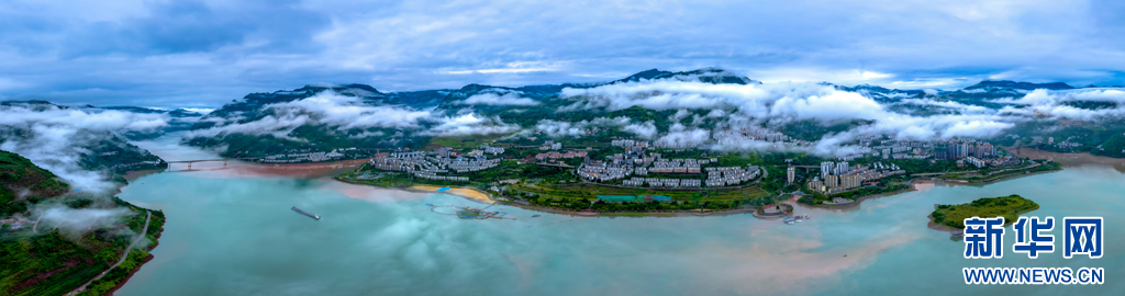 雨后云霧繚繞的江畔小城(10月6日攝)。新華網(wǎng)發(fā)(曾三東 攝)