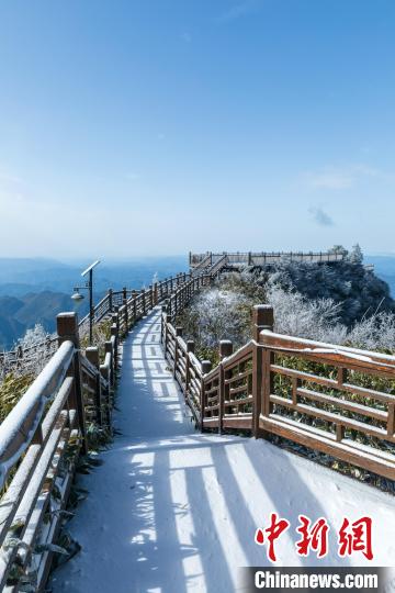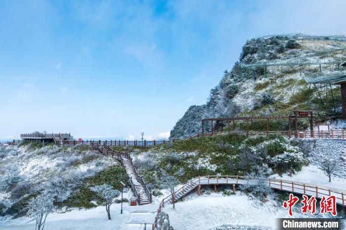 11月25日,受強(qiáng)冷空氣影響,四川省萬源市遭遇強(qiáng)降溫天氣。八臺山景區(qū)迎來了一場降雪,雪花紛紛灑灑,八臺山被裝點(diǎn)成了銀裝素裹的冰雪世界。鄭興平 攝